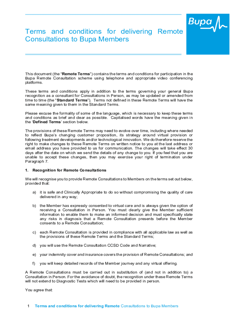 Terms and conditions for delivering Remote Consultations to BPA Membership document (the Remote Terms) contains the terms and conditions for participation in the BPA Remote Consultation scheme using