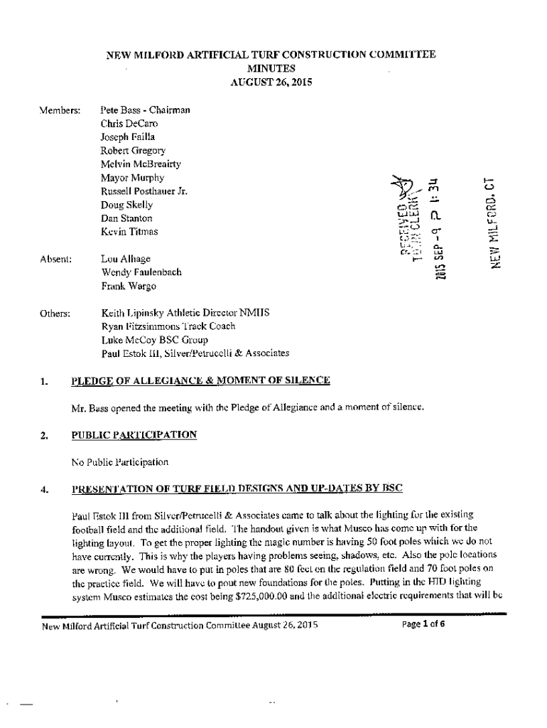 NEW MILFORD ARTIFICIAL TURF CONSTRUCTION COMMITTEE