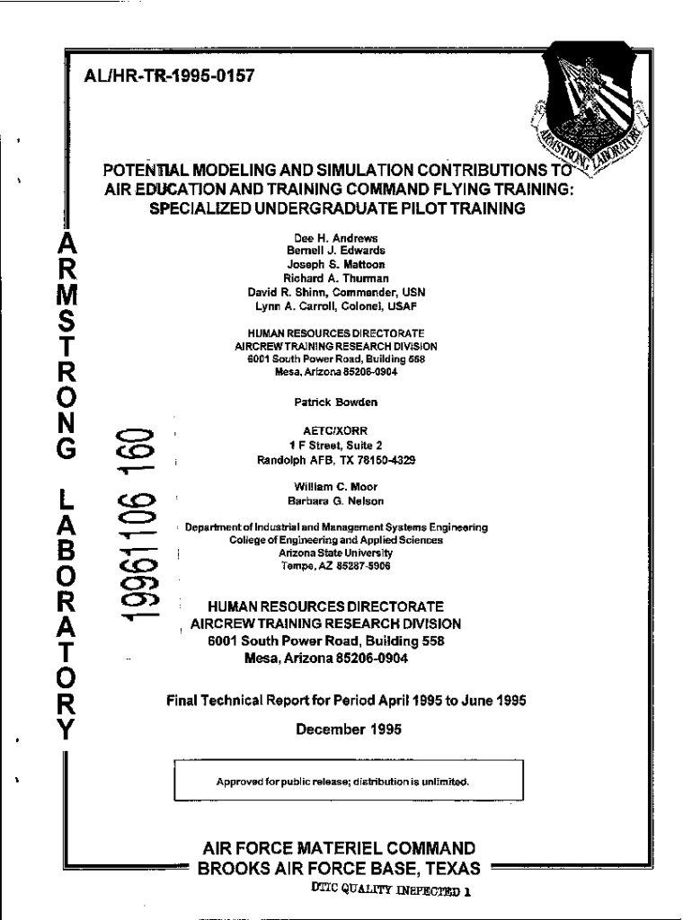 AL/HRTR19950157POTENTIAL MODELING AND SIMULATION CONTRIBUTIONS AIR EDUCATION AND TRAINING COMMAND FLYING TRAINING SPECIALIZED UNDERGRADUATE PILOT TRAINING R M S T R O N G L A B O R A T 0 RY Dee H.