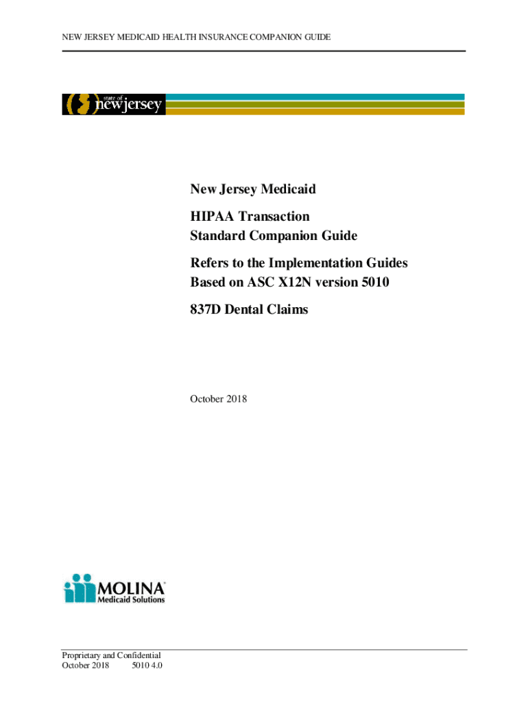 NEW JERSEY MEDICAID HEALTH INSURANCE COMPANION Guidebook Jersey Medicaid HIPAA Transaction Standard Companion Guide Refers to the Implementation Guides Based on ASC X12N version 5010 837D Dental Claims