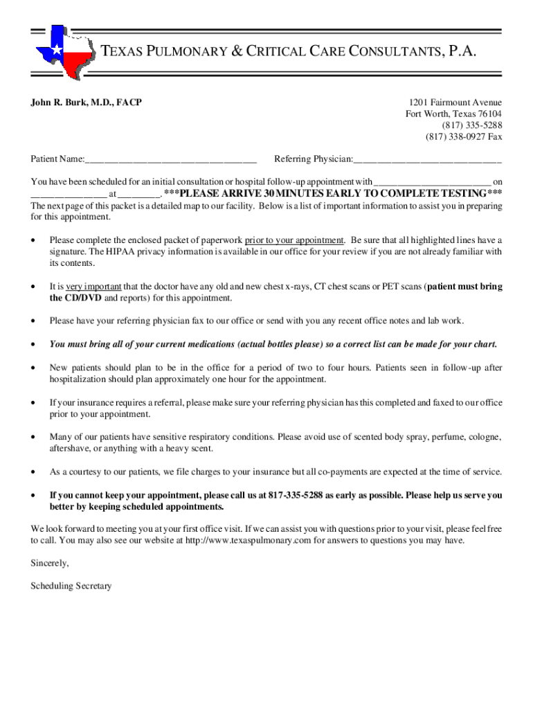 North Texas Pulmonary Critical is not the form you're looking for?Search for another form here.