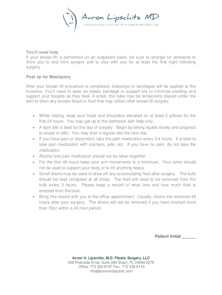 Patients can fill out the breast lift preparationamerican society forms provided by their plastic surgeon and follow the instructions outlined in the guidelines.