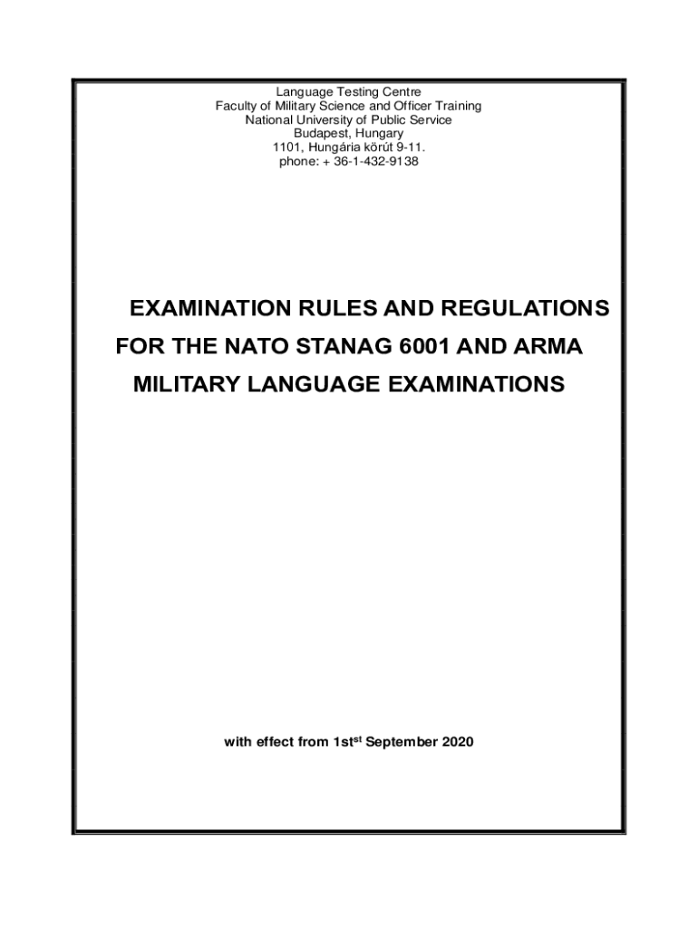 Language Testing Center Faculty of Military Science and Officer Training National University of Public Service Budapest, Hungary 1101, Hungarian art 911. Phone: + 3614329138EXAMINATION RULES AND REGULATIONS
