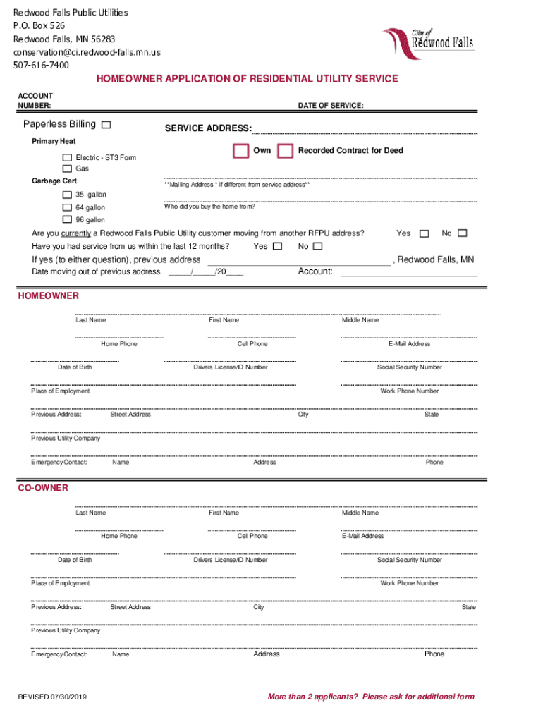 Get the free Billing & Applications - City of Redwood Falls MN