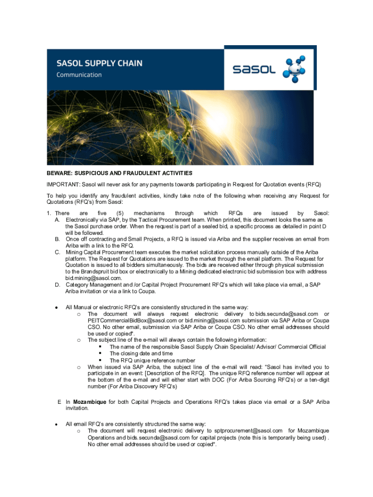 Get the free Sasol - Tenders / Request for Quotations (RFQs) will never...