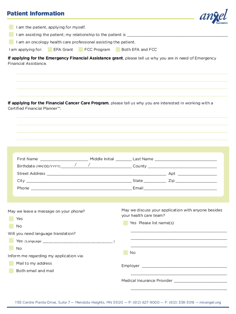 One Application Packet for: Emergency Financial Assistance Grant Financial Cancer Care Program Apply for Botha the same time ** Please note your application may take 57 business days to process. **Application