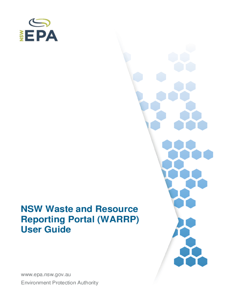 NSW Waste and Resource Reporting Portal (WARP) User Guide.EPA.NSW.gov.AU Environment Protection Authority 2016 State of NSW and Environment Protection Authority Except photographs, the State of NSW