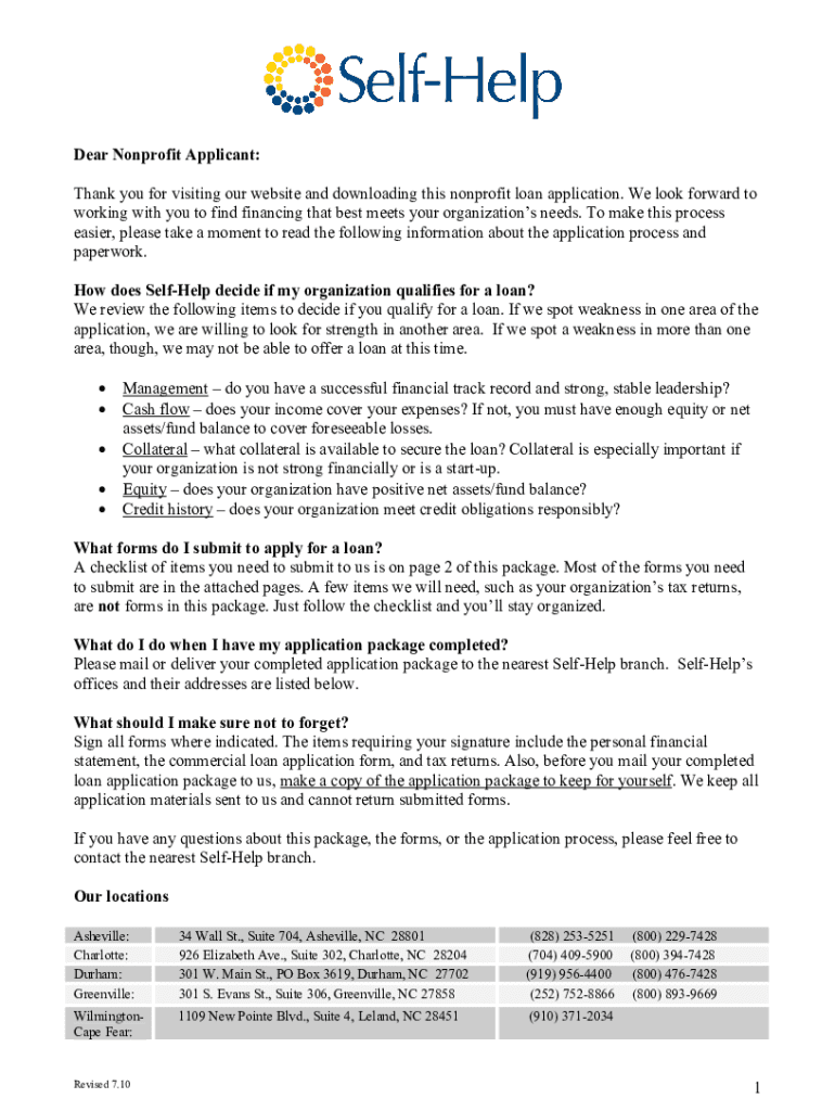 Dear Nonprofit Applicant: Thank you for visiting our website and downloading this nonprofit loan application. We look forward to working with you to find financing that best meets your organizations