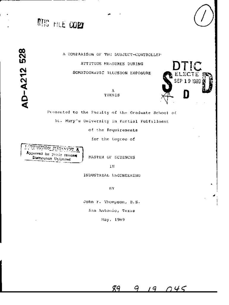 Get the free A Comparison of Two Subject-Controlled Attitude Measures during Somatogravic Illusio...