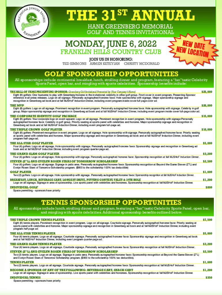 Shank GREENBERG MEMORIALGOLF AND TENNIS Invitational