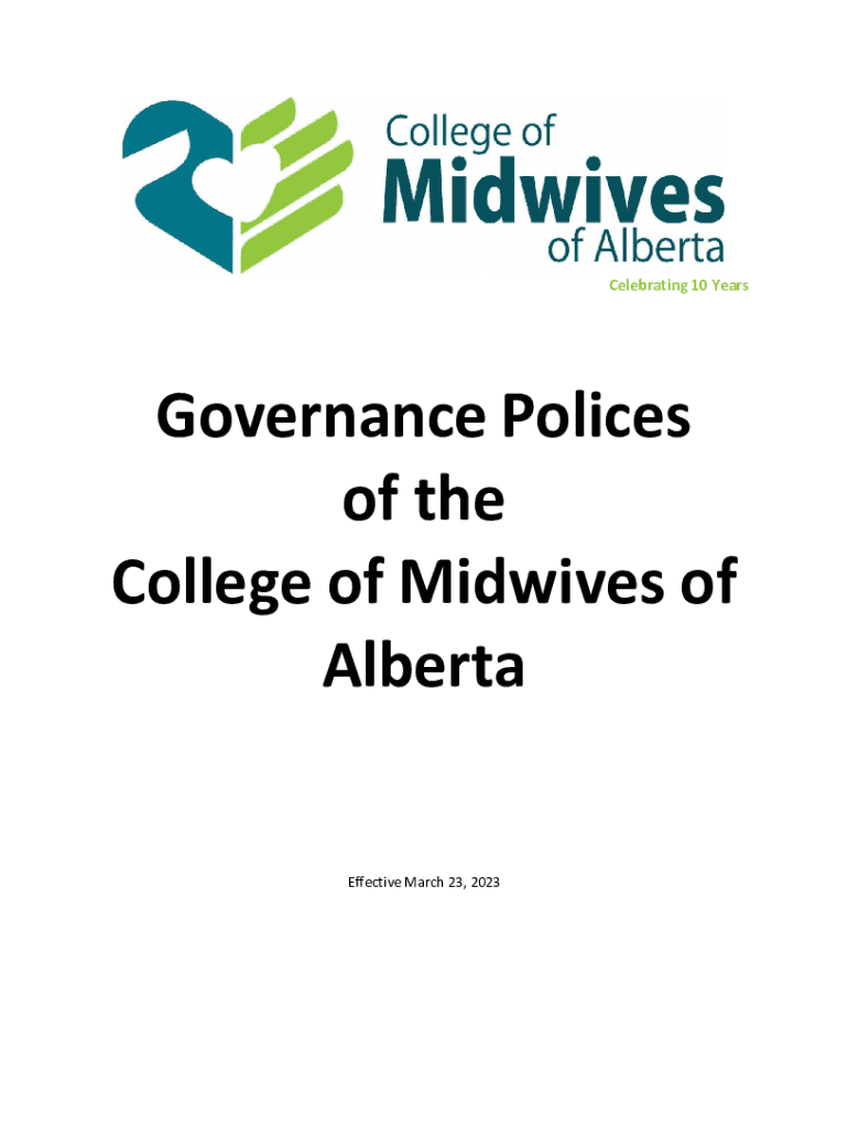 Celebrating 10 YearsGovernance Polices of the College of Midwives of Alberta Effective March 23, 2023Governance Policies Governance Policies and Bylaws The Governance Policies of the College of Midwives