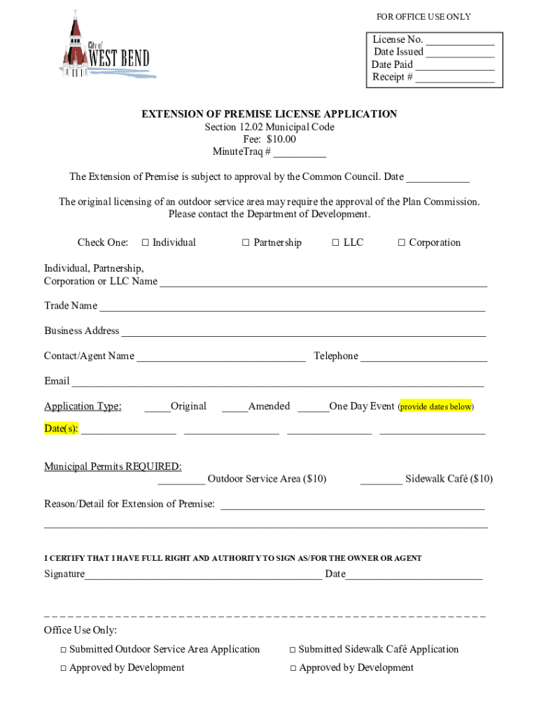 EXTENSION OF PREMISE LICENSE APPLICATION