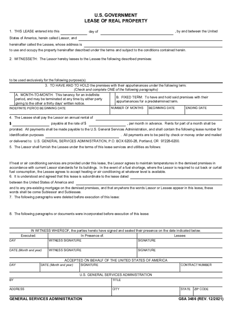 Get the free GSA 3486 - U.S. Government Lease of Real Property
