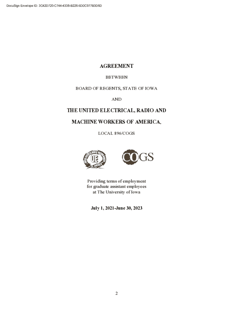 DocuSign Envelope ID: 3C42D720C7444338B2265DDC977B3D6DAGREEMENT BETWEEN BOARD OF REGENTS, STATE OF IOWA ANOTHER UNITED ELECTRICAL, RADIO AND MACHINE WORKERS OF AMERICA, LOCAL 896/COGSProviding terms