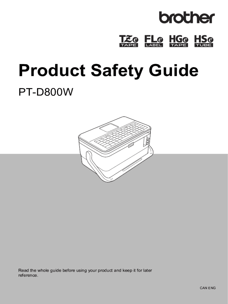 Product Safety Guide PTD800WRead the whole guide before using your product and keep it for later reference. CAN ENGIntroductionThe documentation included with the Touch labeling system, including