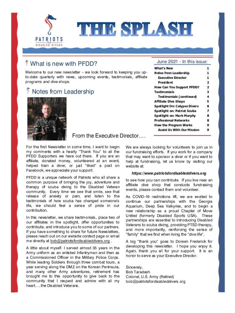 June 2021 In this issue:What is new with PADD? Welcome to our new newsletter we look forward to keeping you update quarterly with news, upcoming events, testimonials, affiliate programs and dive shops.