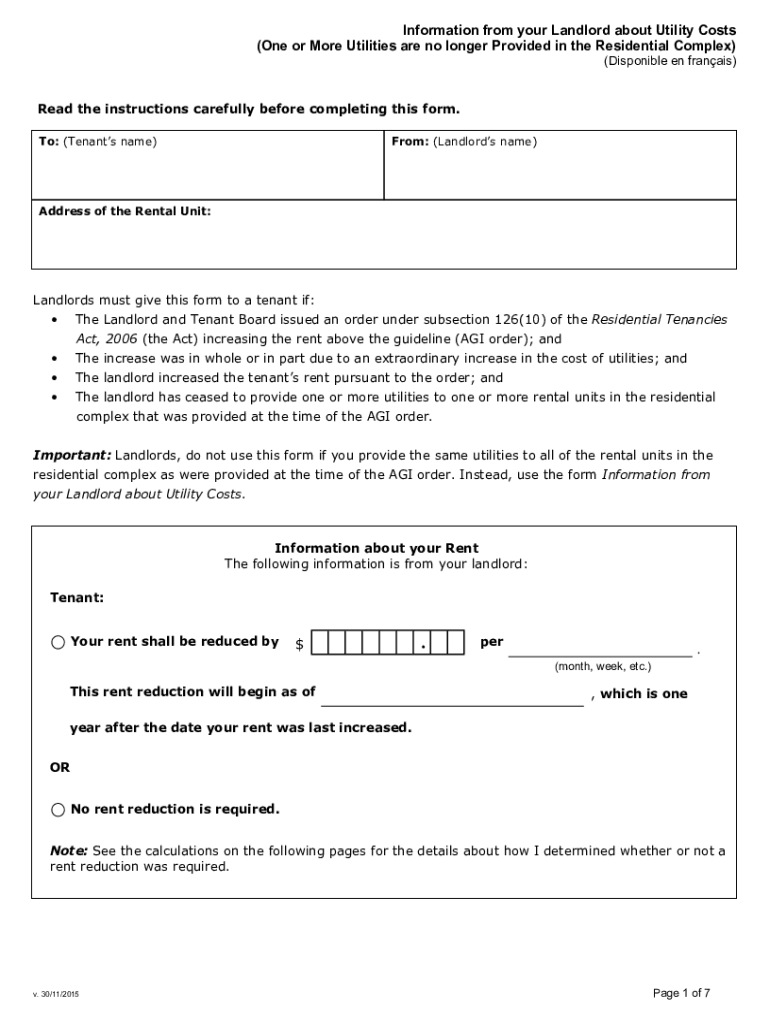 Information from your Landlord about Utility Costs (One or More Utilities are no longer Provided in the Residential Complex) (Disposable en Francis)Read the instructions carefully before completing