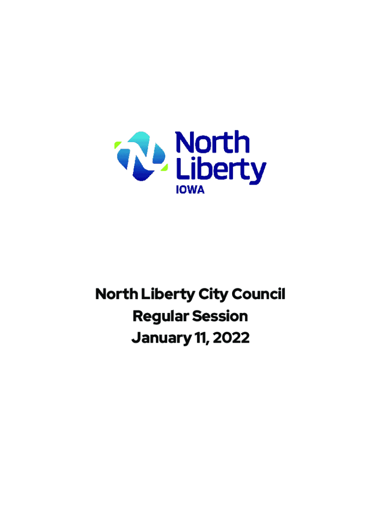 North Liberty City Council Regular Session January 11, 2022City Administrator Memory From Date Mayor and City Council Ryan Hear, City Administrator January 7, 2022, City Council Agenda January 11,