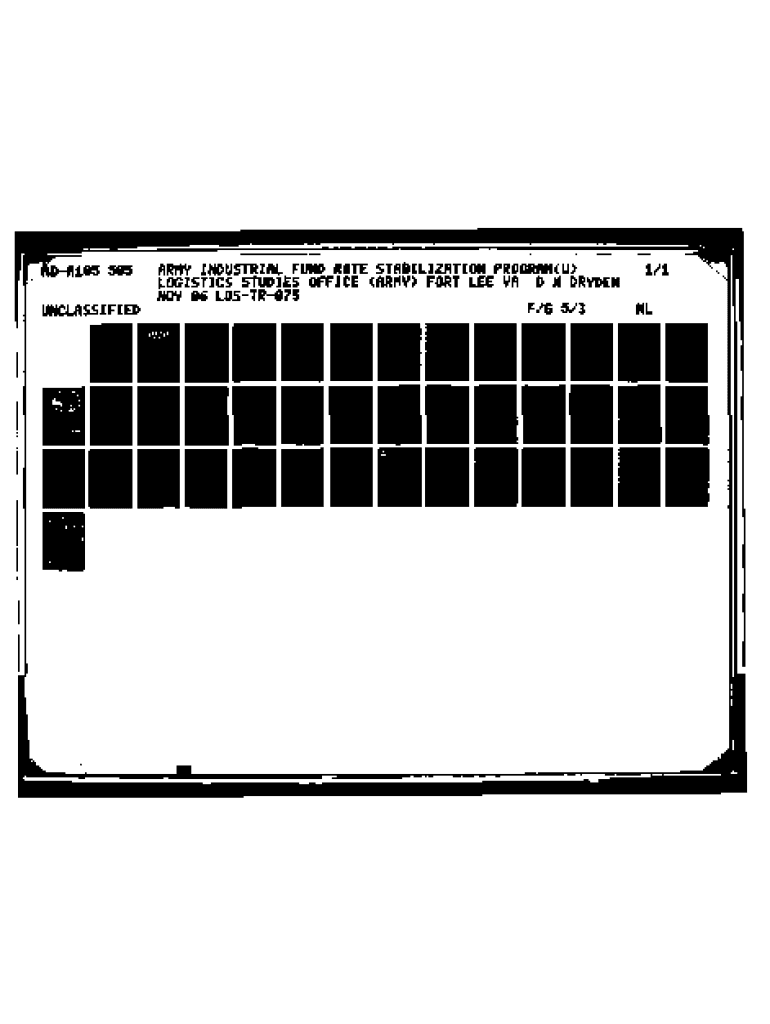 76RIS 505 \” ARMY INDUSTRIAL FUND RATE STABILIZATION PROGRAM(U) LOGISTICS STUDIES OFFICE (ARMY) FORT LEE VR D N DRYDEN NOV 6 LOSTR075 F/G/3NL tL.SSIIE1/1EEi/ll/hhhlhEI i////Eel///FEEL. Nl7,\”\”