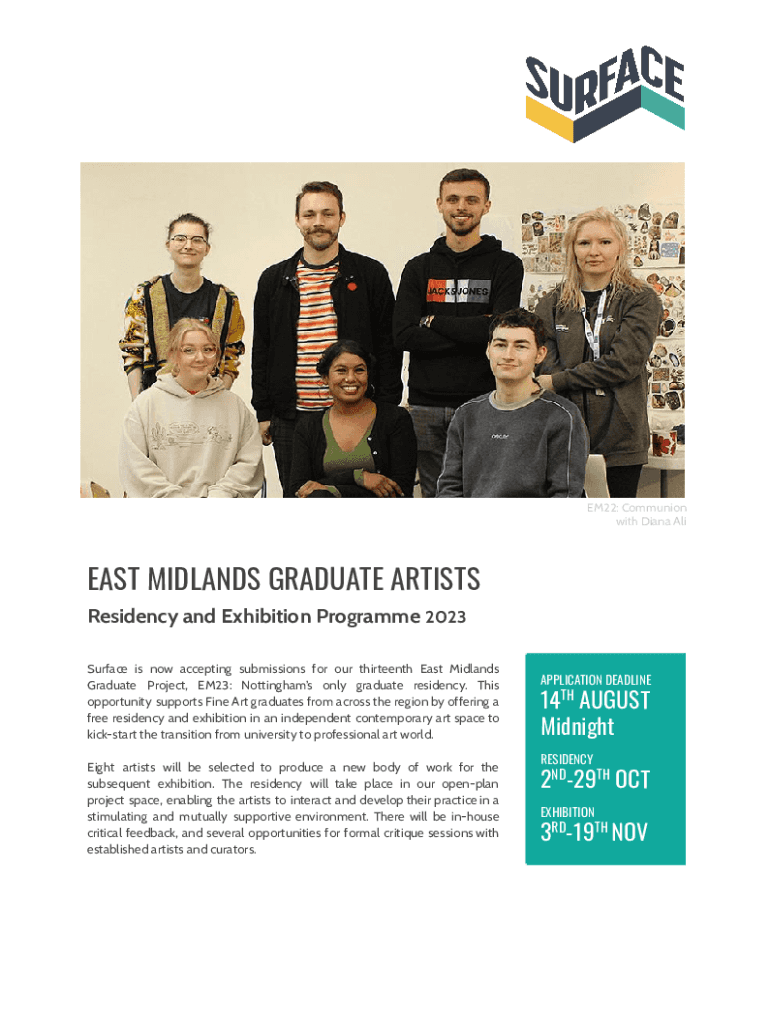 EM22: Communion with Diana Least MIDLANDS GRADUATE ARTISTS Residency and Exhibition Program 2023 Surface is now accepting submissions for our thirteenth East Midlands Graduate Project, EM23: Nottingham's