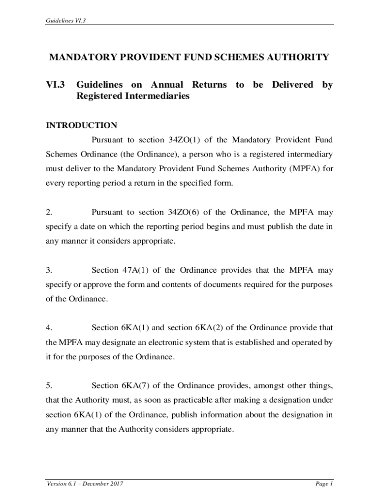 Guidelines VI.3MANDATORY PROVIDENT FUND SCHEMES AUTHORITY VI.3Guidelines on Annual Returns to be Delivered by Registered IntermediariesINTRODUCTION Pursuant to section 34ZO(1) of the Mandatory Provident