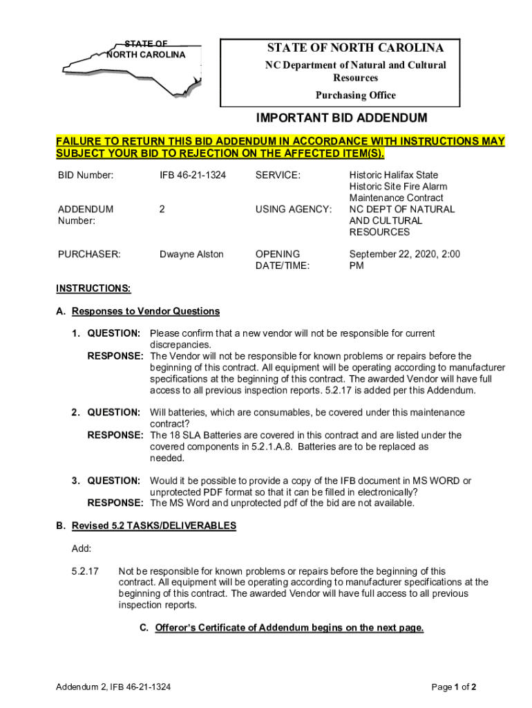 Purchasing OfficeIMPORTANT BID ADDENDUM