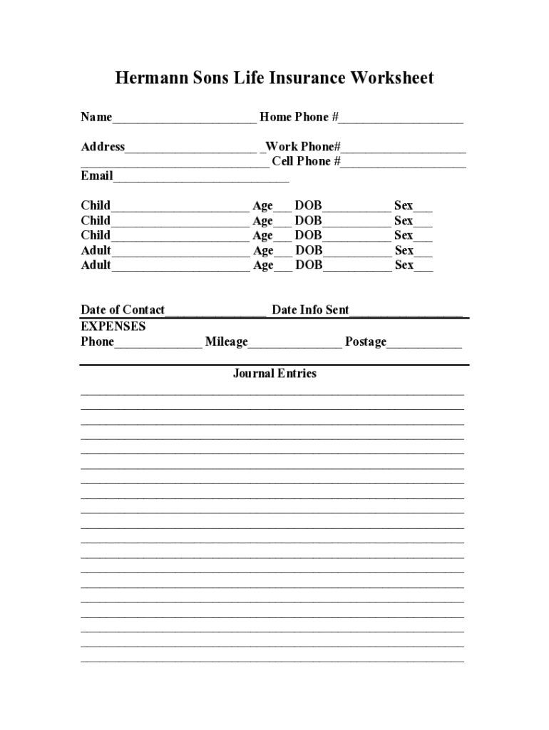 Get the free Hermann Sons Life Insurance Worksheet