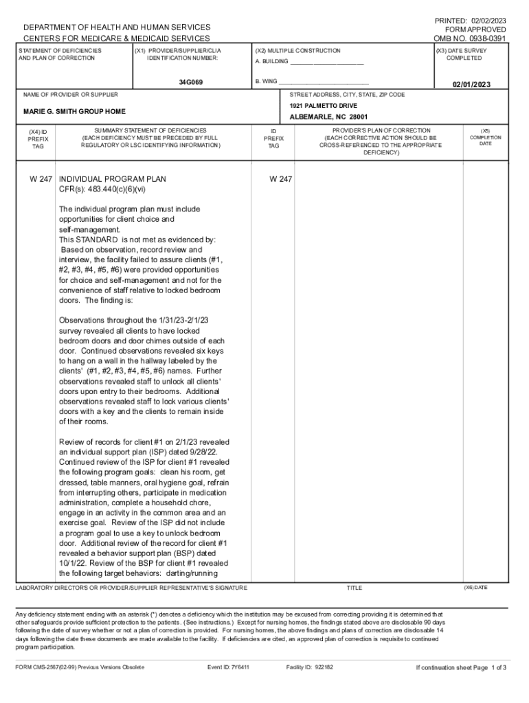 AND PLAN OF CORRECTION(X1) PROVIDER/SUPPLIER/CIA