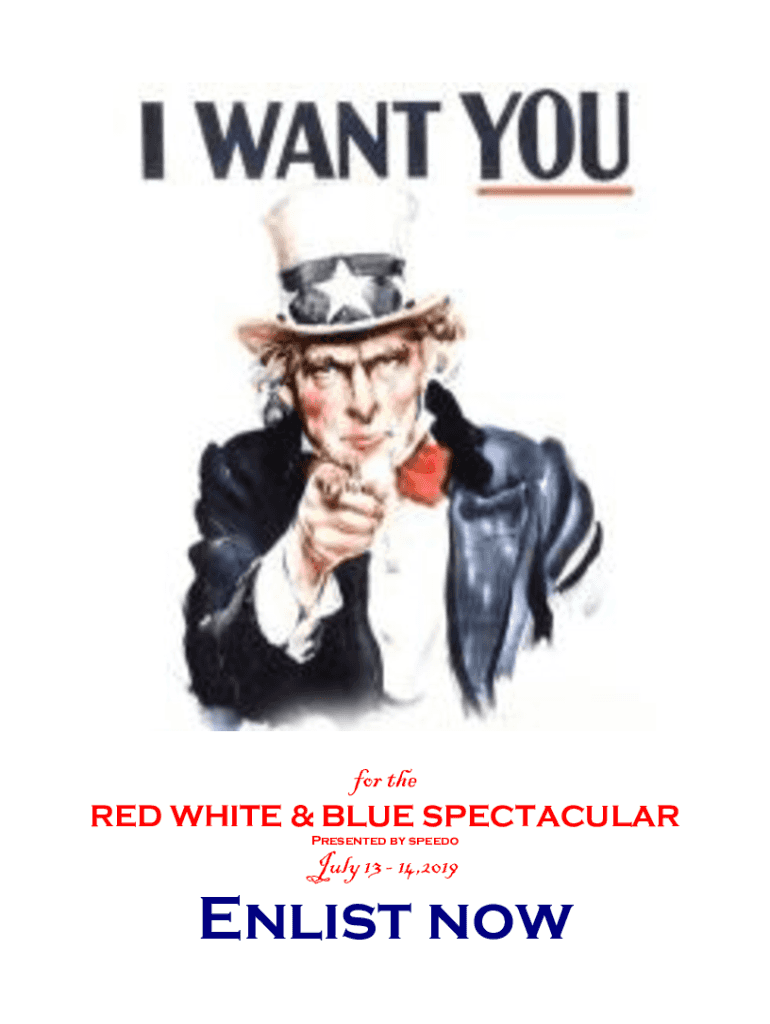 For the RED WHITE & BLUE SPECTACULAR Presented by speedily 13 14,2019Enlist Buehler Blue Marlins Swim Team Red, White & Blue Spectacular Presented by Speedily 13 14 2019 Approved by USA Swimming,