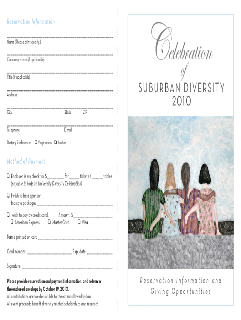 Re SE r vat i o n I NF o r m a t i o n ___ Name (Please print clearly.) ___ Company Name (if applicable) ___ Title (if applicable) ___ Address ___ City State Celebration suburban DIVERSITY Y 2010___
