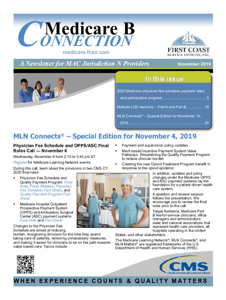 CONNECTION Medicare B medicare.FCS.coma Newsletter for MAC Jurisdiction N Providers November 2019In this issue 2020 Medicare physician fee schedule payment rates and participation program ...........................................