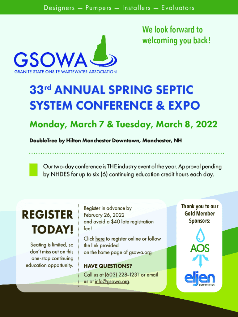 Get the free GSOWA 34th Annual Spring Septic System Conference & ...
