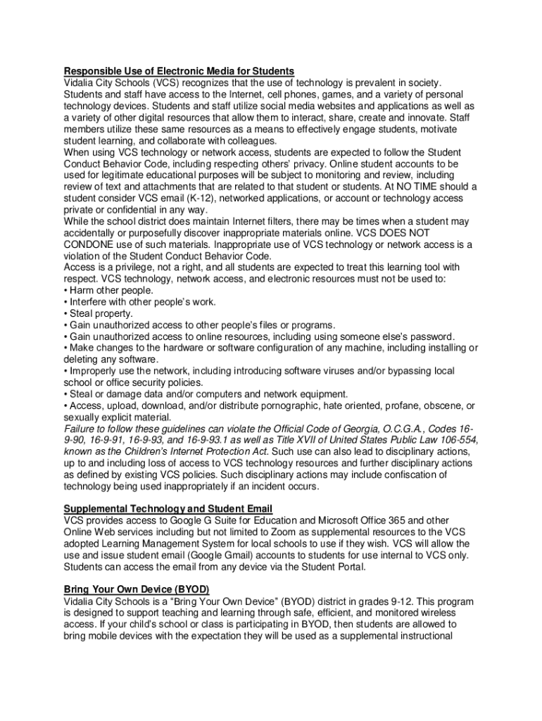 Get the free Responsible Use of Electronic Media for Students Vidalia ...