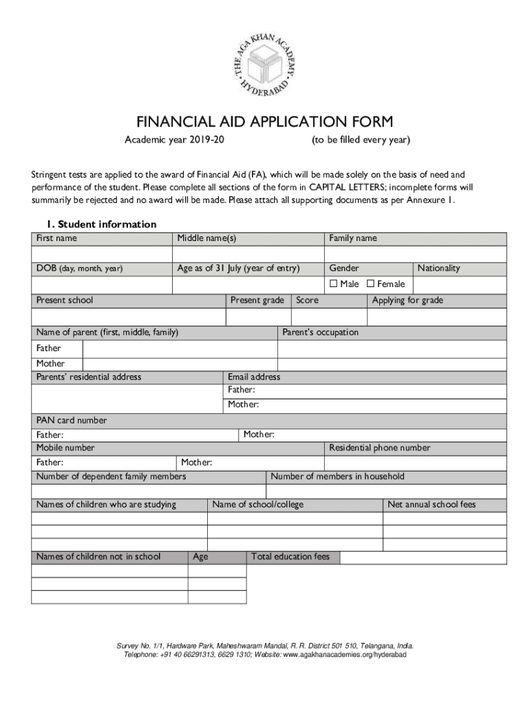 FINANCIAL AID APPLICATION FORM Academic year 201920(to be filled every year)Stringent tests are applied to the award of Financial Aid (FA), which will be made solely on the basis of need and performance