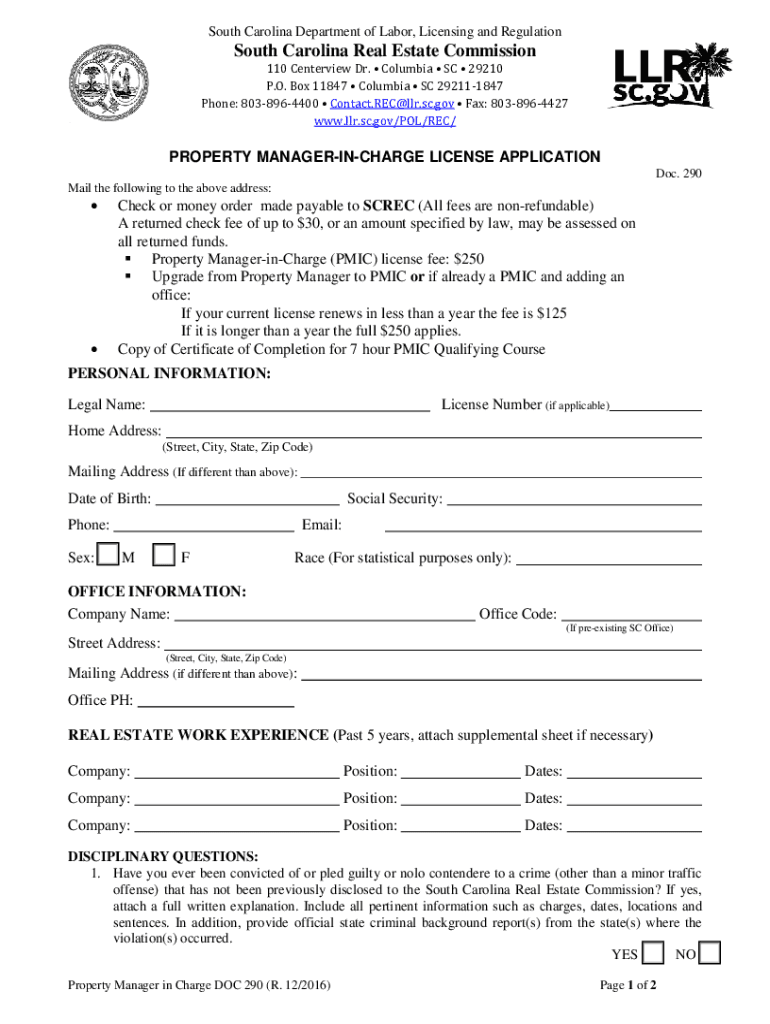 South Carolina Department of Labor, Licensing and Regulation South Carolina Real Estate Commission 110 Center view Dr. Columbia SC 29210 P.O. Box 11847 Columbia SC 292111847 Phone: 8038964400 Contact.REC@llr.sc.gov