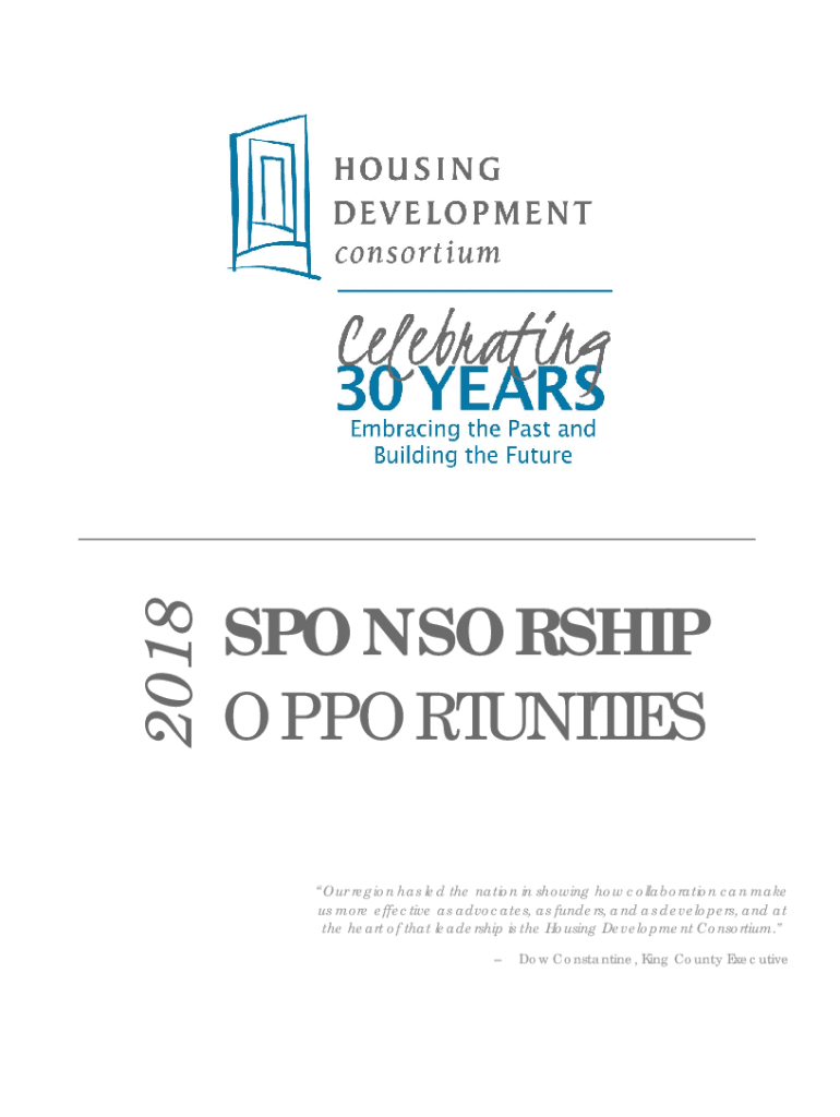 2018SPONSORSHIP OPPORTUNITIES Our region has led the nation in showing how collaboration can make us more effective as advocates, as funders, and as developers, and at the heart of that leadership