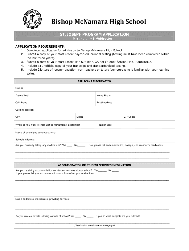 Prospective students can fill out apply - bishop mcnamara by visiting the school's website and following the instructions on the application form.