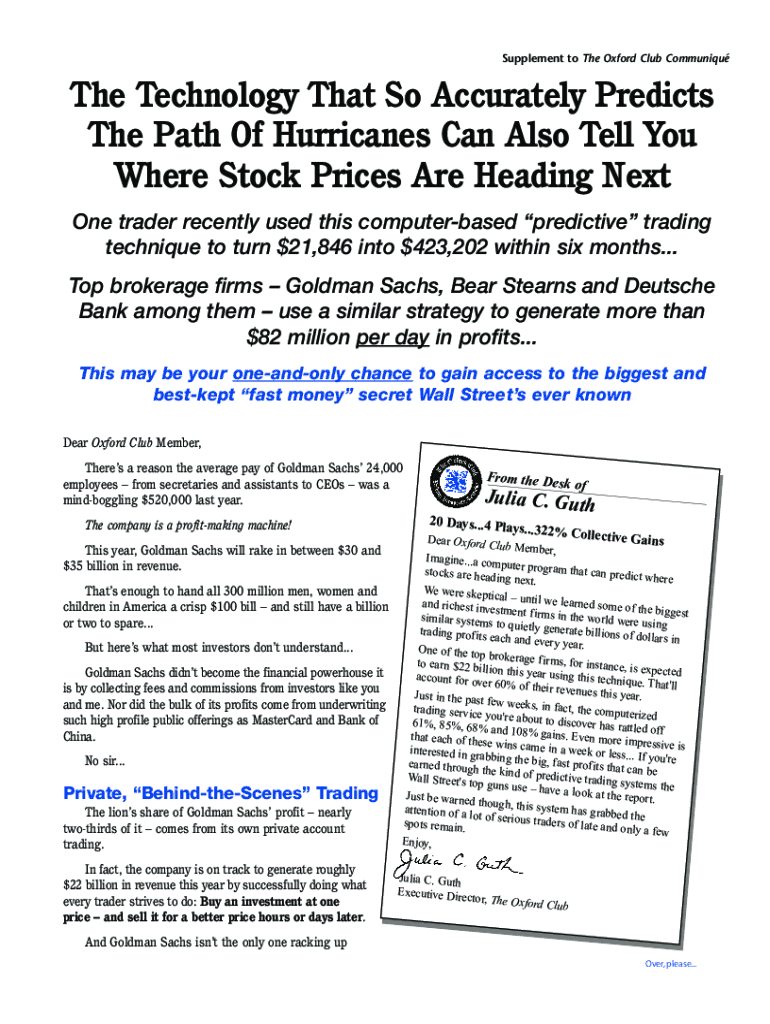 Supplement to The Oxford Club Communiqué Technology That So Accurately Predicts The Path Of Hurricanes Can Also Tell You Where Stock Prices Are Heading Next One trader recently used this computer