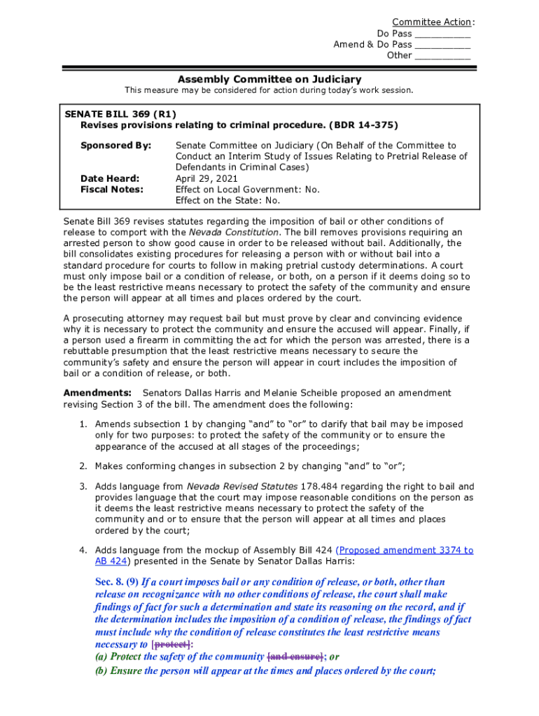 Get the free Bill Page and Amendments for SB 369. Assembly Committee on Judiciary - May 14, 2021