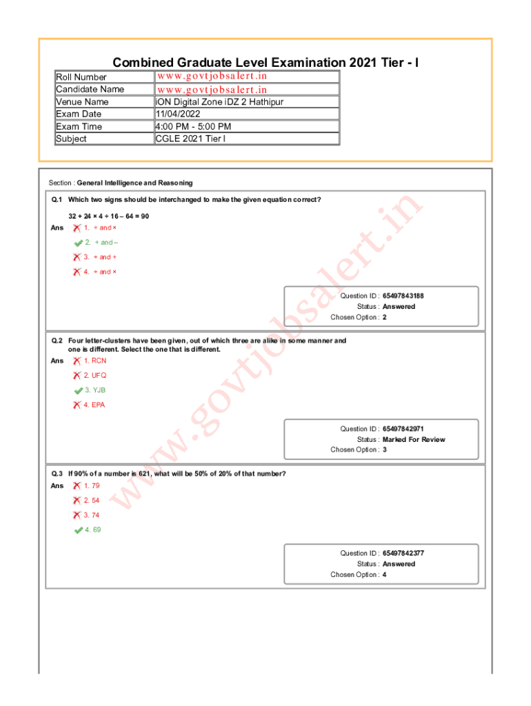 Combined Graduate Level Examination 2021 Tier I www.govtjobsalert.in www.govtjobsalert.inRoll Number Candidate Name Venue Name Exam Date Exam Time Subjection Digital Zone ID 2 Jaipur 11/04/2022 4:00