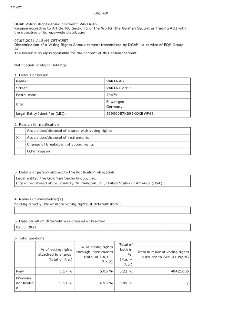 Voting rights notifications are typically filled out electronically through the designated regulatory authority's website. The form requires detailed information about the investor, the company, and the ownership stake.