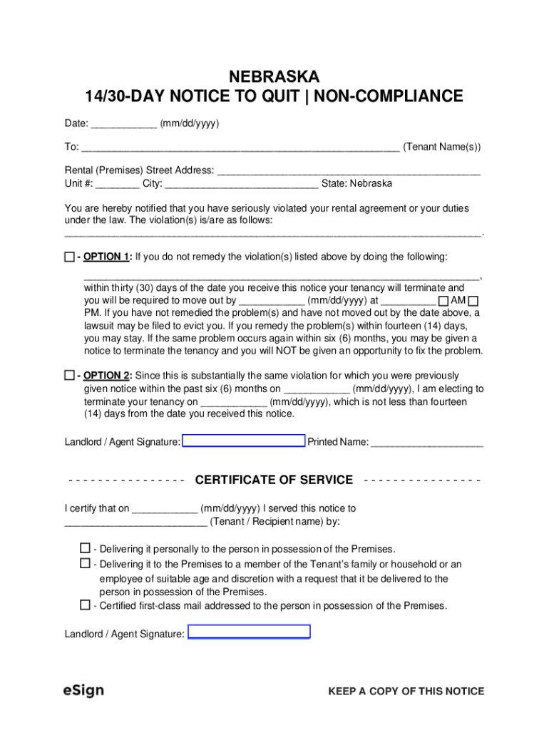 Get the free Nebraska 14/30-Day Notice to Quit for Non-Compliance