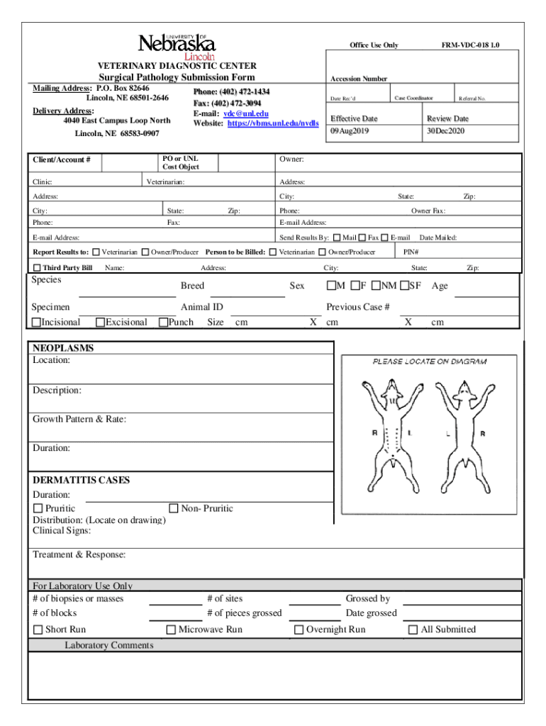 Get the free Surgical Pathology Submission Form Species Breed Sex ... - vbms unl