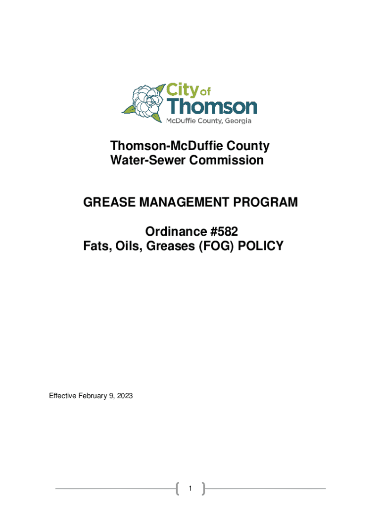 Fats, Oils, Greases (FOG) POLICYEffective February 9, 20231TABLE OF CONTENTS