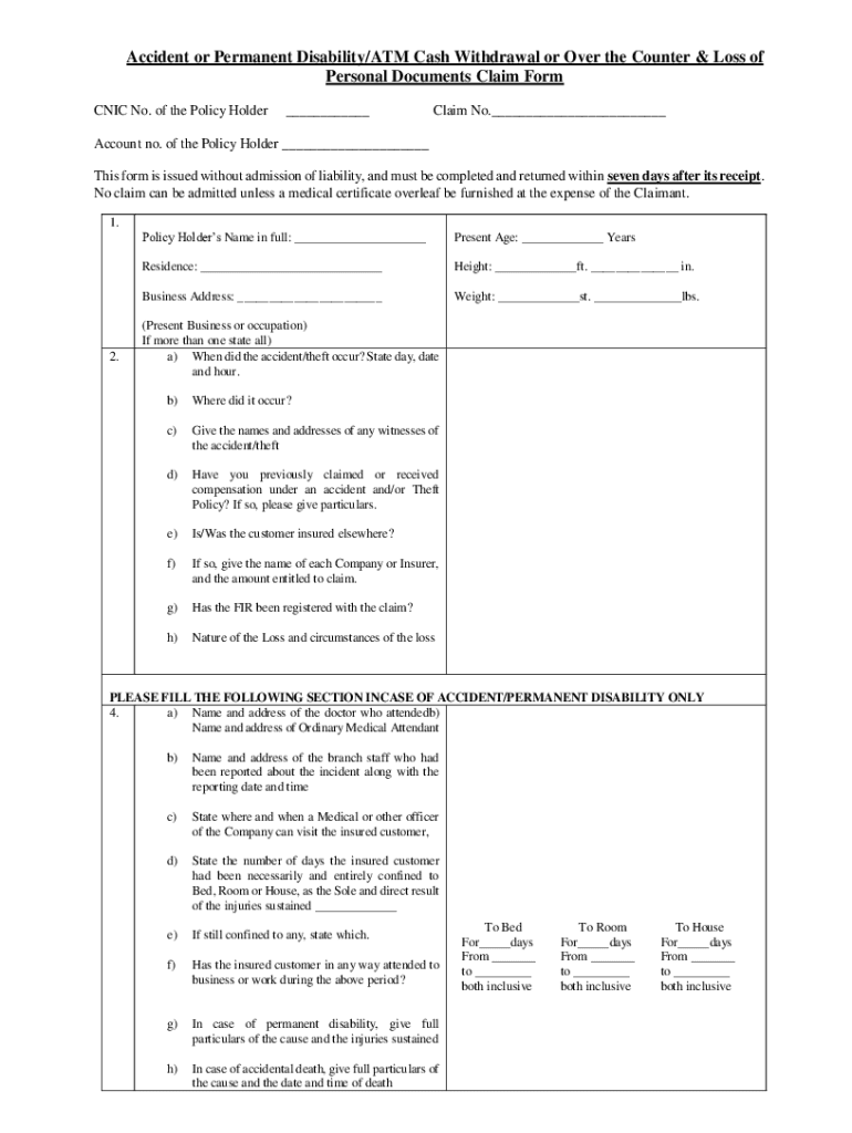 CNIC No. of the Policy Holder___Claim No.___Account no. of the policyholder ___