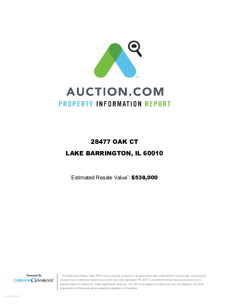 28477 OAK CT LAKE BARRINGTON, IL 60010Estimated Resale Value*: $538,000×The Estimated Resale Value (ERV) of the property is based on an automated value obtained from a third party, assuming the property