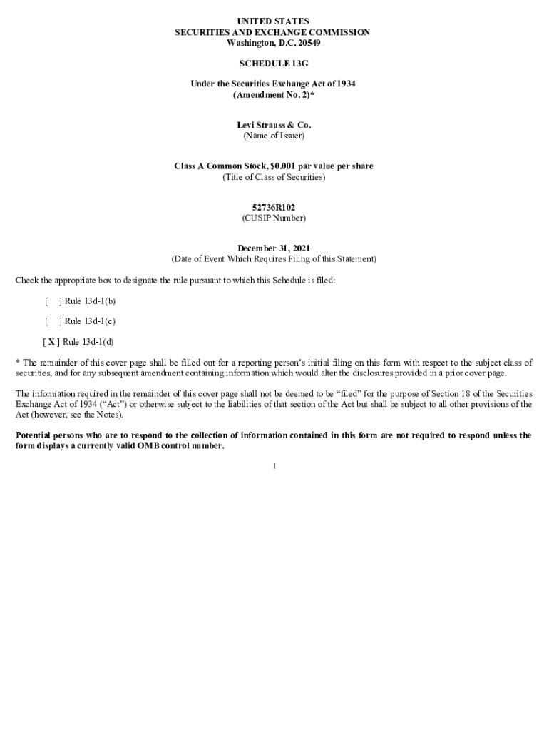 UNITED STATES SECURITIES AND EXCHANGE COMMISSION Washington, D.C. 20549 SCHEDULE 13G Under the Securities Exchange Act of 1934 (Amendment No. 2)* Levi Strauss & Co. (Name of Issuer) Class A Common