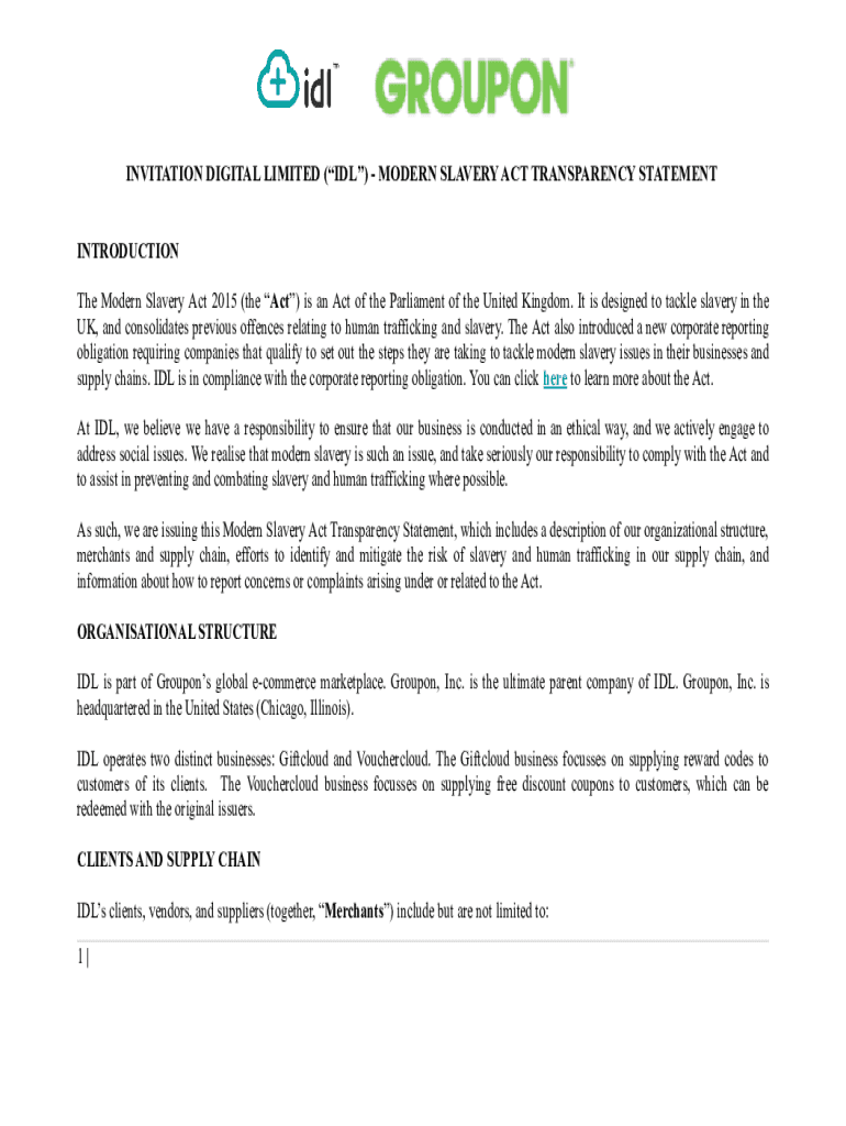 Get the free IDL - Modern Slavery Act Transparency Statement