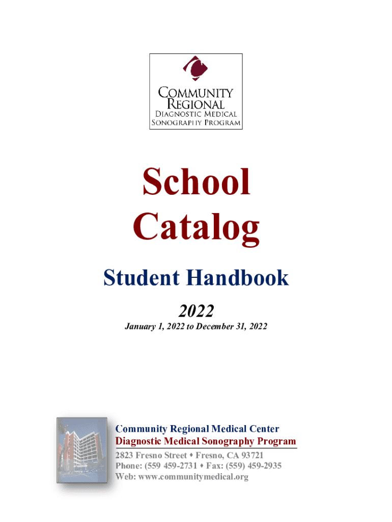 School Catalog Student Handbook 2022 January 1, 2022, to December 31, 2022Community Regional Medical Center Diagnostic Medical Sonography Program 2823 Fresno Street Fresno, CA 93721 Phone: (559 4592731