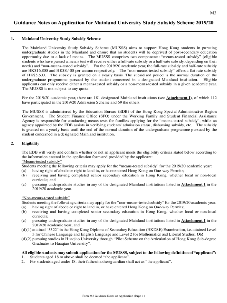 M3Guidance Notes on Application for Mainland University Study Subsidy Scheme 2019/20 1. Mainland University Study Subsidy Scheme The Mainland University Study Subsidy Scheme (MUSES) aims to support